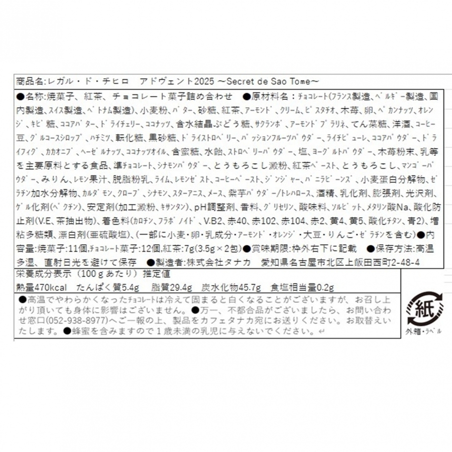 1日から25日までの小窓には、カフェタナカ人気のクッキーやボンボンショコラに加えて、新作のビーンズ・ショコラや紅茶なども。バラエティーに富んだスイーツとともにクリスマスまでのカウントダウンと素敵なティータイムをお愉しみください。