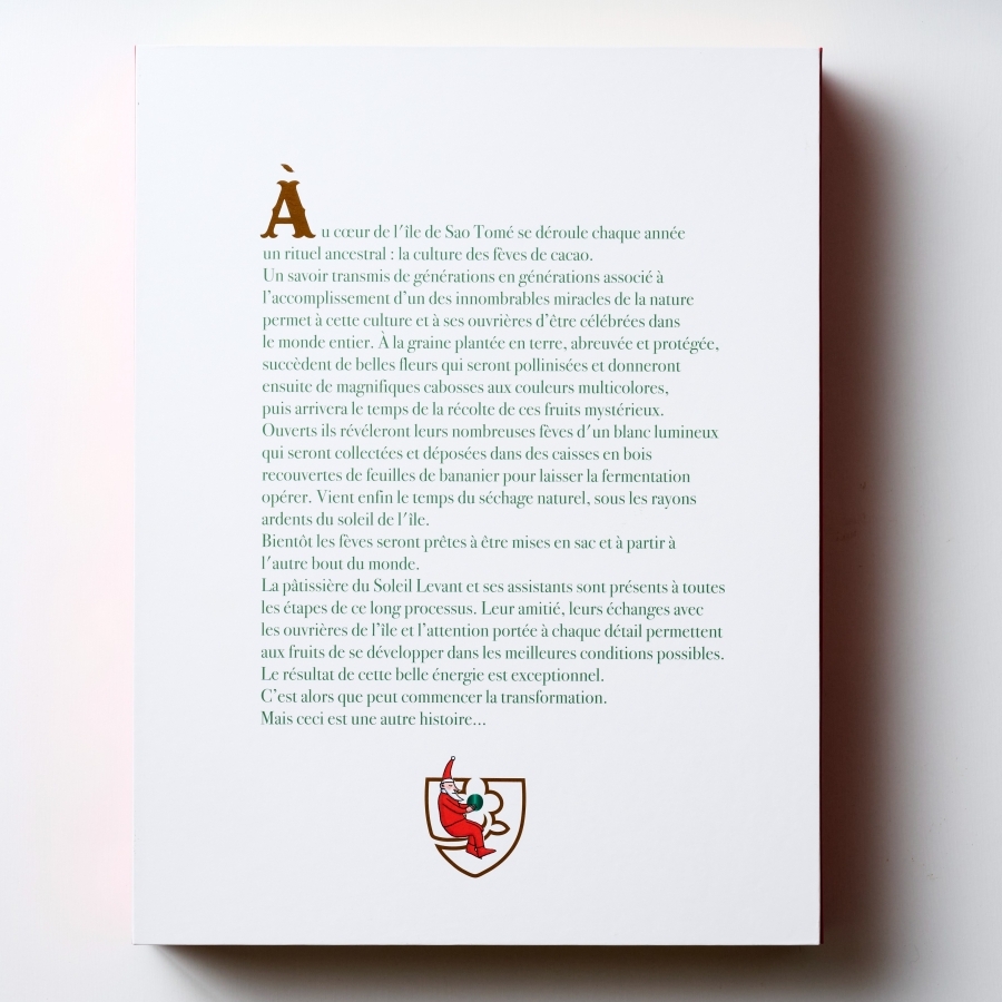 テーマとなる「西アフリカのサントメ島」は2019年に「カフェタナカ希望の有機カカオ農園」を開園した島です。カフェタナカはサントメカカオの原種を守りながら荒れた農園の再生と現地女性の自立を支援するサントメプロジェクトを遂行しており、2025アドヴェントではその物語の第1章を表現しています。