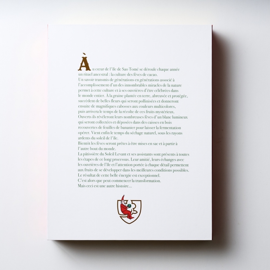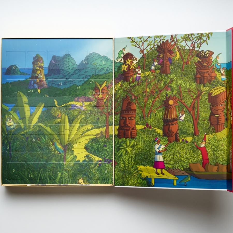 中世の洋書をイメージした箱を開けると、そこには西アフリカサントメ島のクリスマスのファンタジックな世界が広がります。